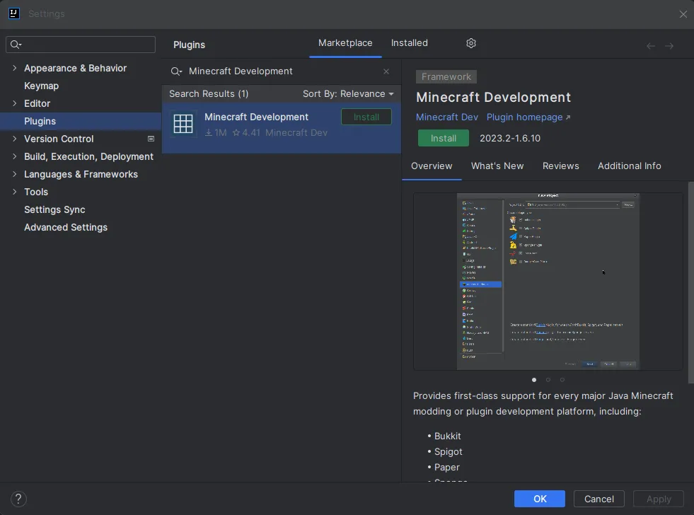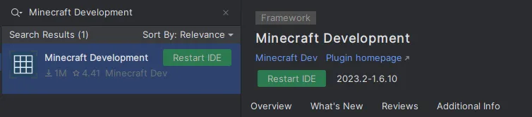 Section titled “Installing the Minecraft Development plugin”The first thing you need to do is install the Minecraft Development plugin.